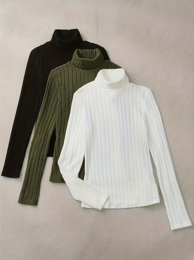 3pcs Women’s High-Neck Long-Sleeved Fitted T-Shirt Set