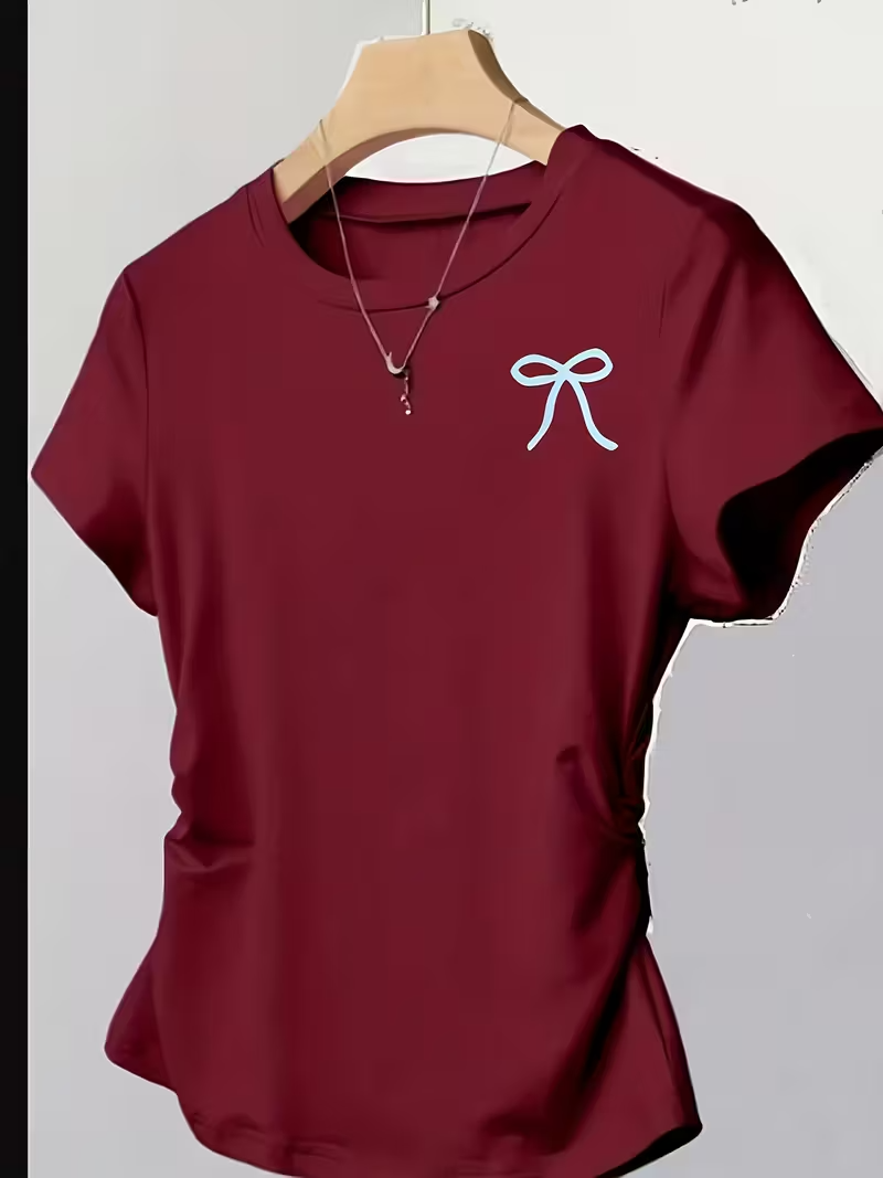 Burgundy Sexy Fitted T-Shirt with Bow Print